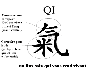 Le caractère chinois pour Qigong représente du riz chauffé dégageant de la vapeur,